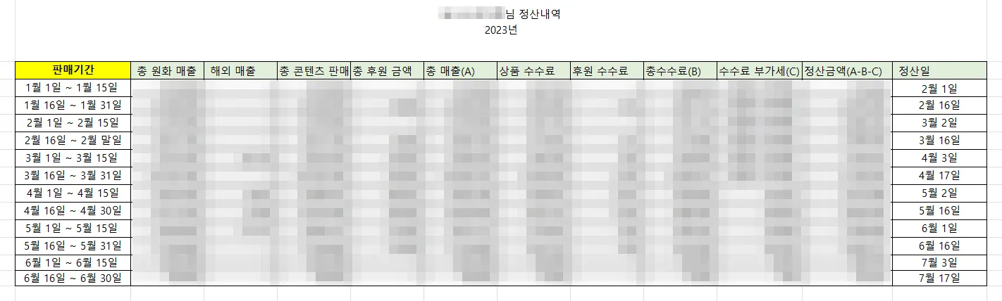 필요에 따라 분기별, 반기별 혹은 1년 단위로 조회 기간을 설정하고, 엑셀 다운로드해서 보내주시면 돼요.
