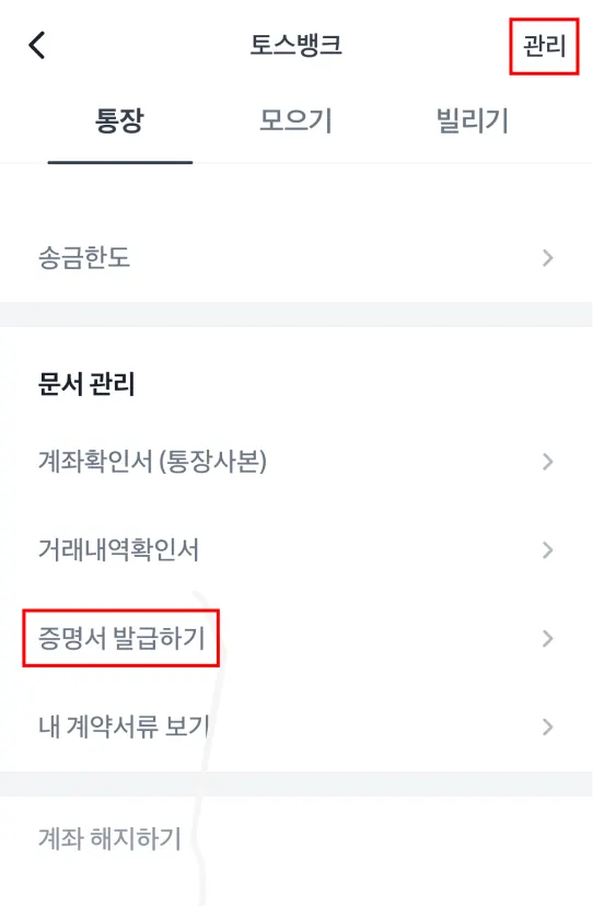 오른쪽 상단 관리 - 문서 관리 - 증명서 발급하기 클릭