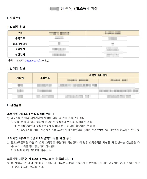 또한 앞으로 상장주식 대주주요건 개정안등 추후 투자를 하실때 주의할점까지 설명을 드리고 매우 만족하시고 정리를 도와드렸습니다.