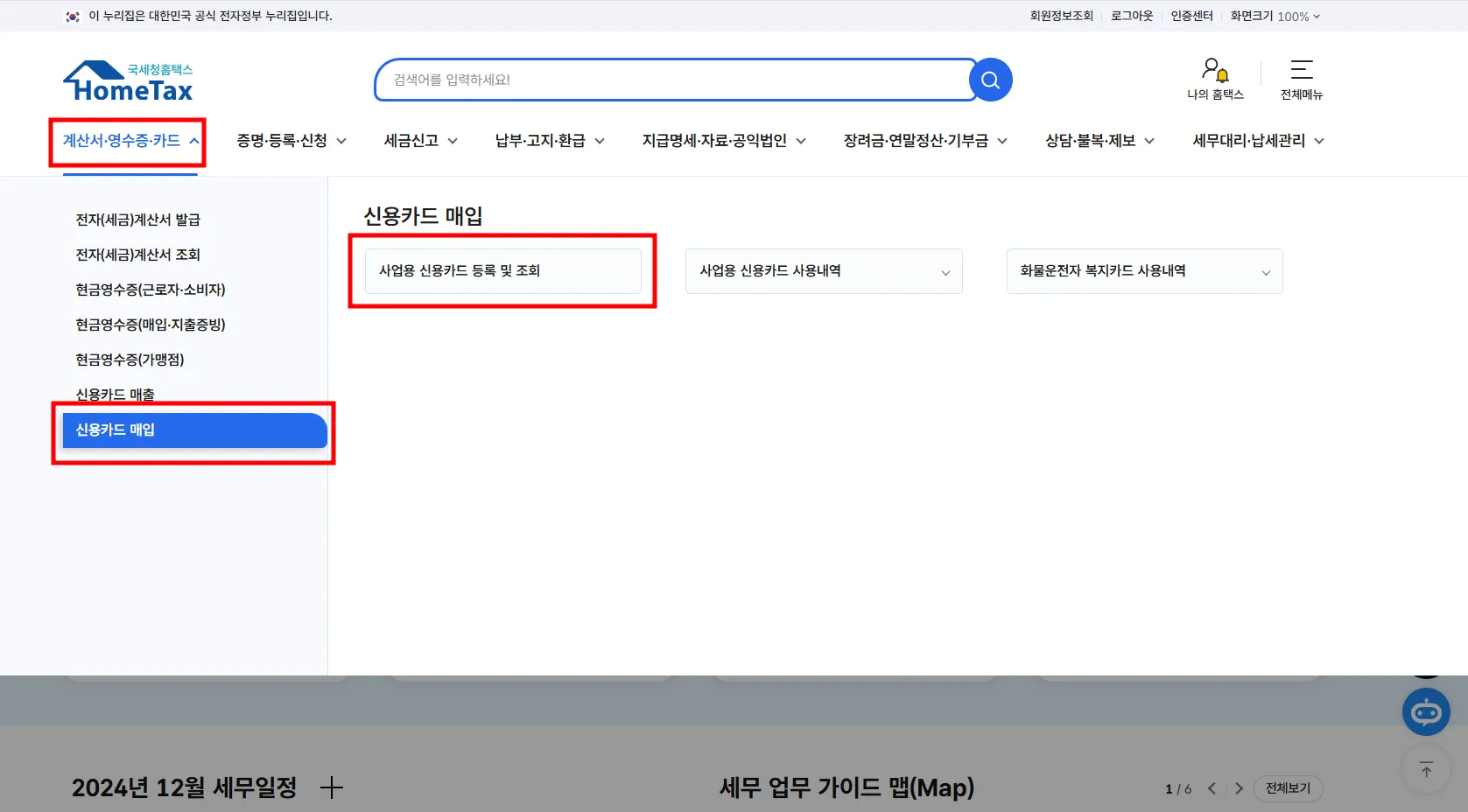 아래의 절차에 따라 사업용신용카드를 홈택스에 등록해 주세요