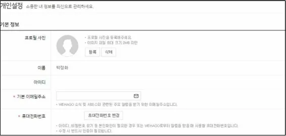 기능을 이용해 ‘개인정보관리’나 ‘보안설정’ 할 수 있습니다.