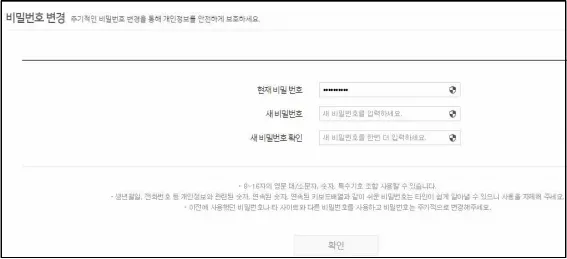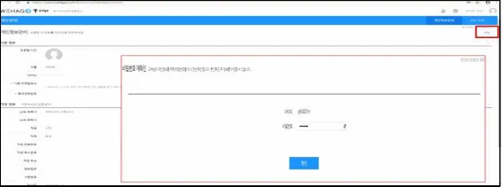 개인정보를 수정하는 경우 오른쪽 위의 수정 버튼을 클릭한 다음 비밀번호를 다시 한번 더 확인 후 정보를 변경할 수 있습니다.