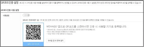 QR코드 인증설정 : QR코드 설정을 통하여 보다 강력한 인증을 수행할 수 있습니다.