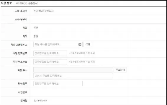 회사정보 : 사용자가 소속된 회사 및 근무일수를 확인할 수 있습니다.