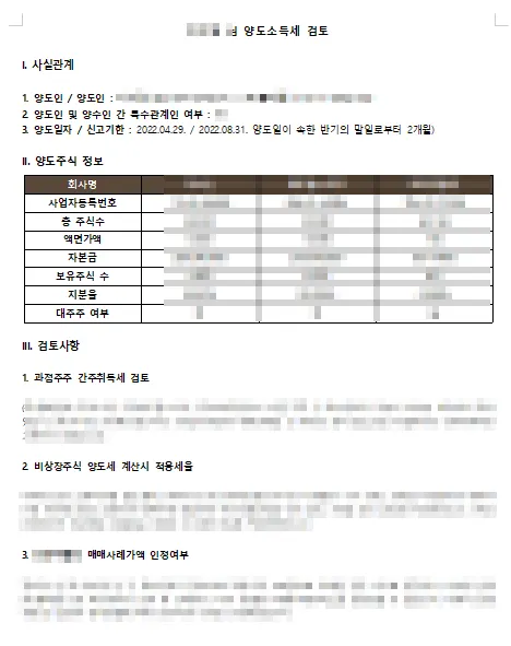 그중 하나의 회사가 대기업과 합병 예정이라 해당 주식의 양도소득세를 어떻게 할지에 대한 컨설팅을 의뢰해주셨습니다.