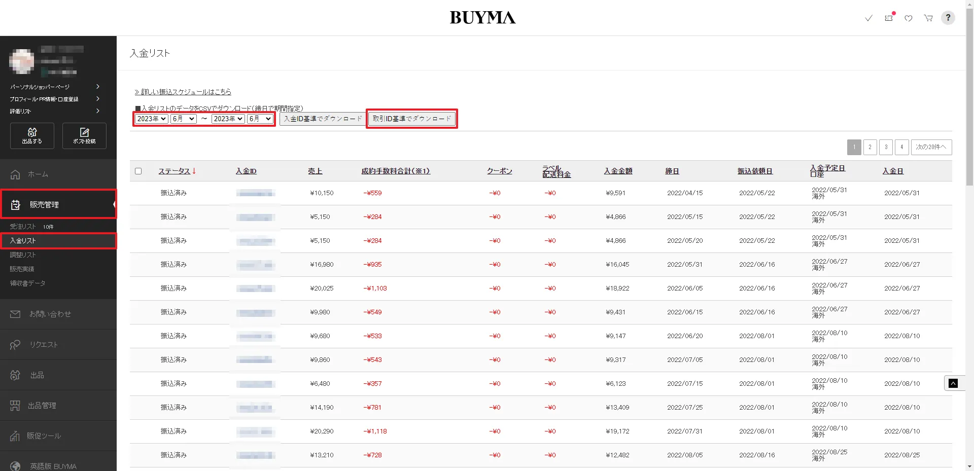입금된 내역은 [판매 관리(販売管理)] - [입금 목록(入金リスト)]에서 조회할 수 있습니다.
