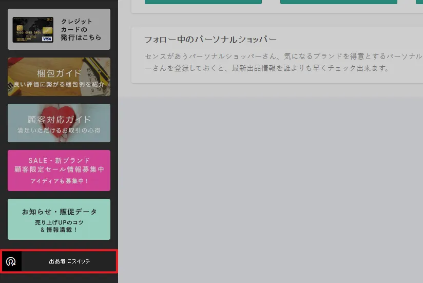 판매자 페이지로 접속해주시면 되는데, 만약 구매자 페이지가 보일 때는 화면 왼쪽 아래 [판매자로 스위치] 버튼을 누르면 판매자 페이지로 넘어갈 수 있습니다.
