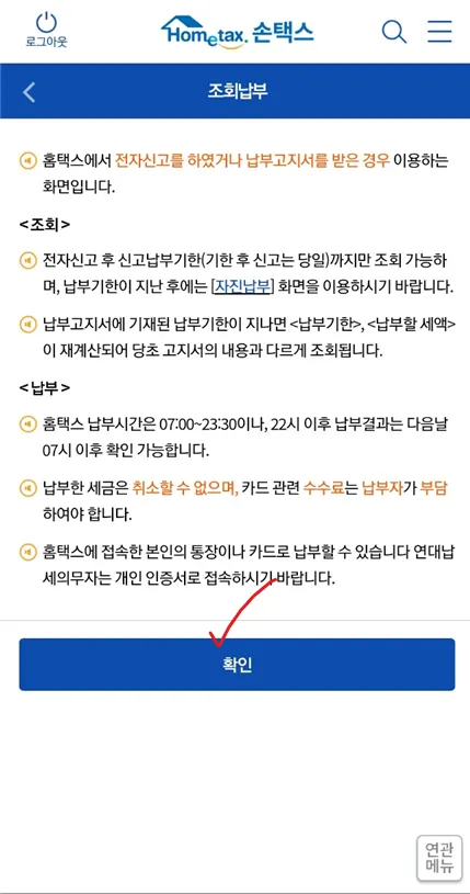 납부할 세액 확인