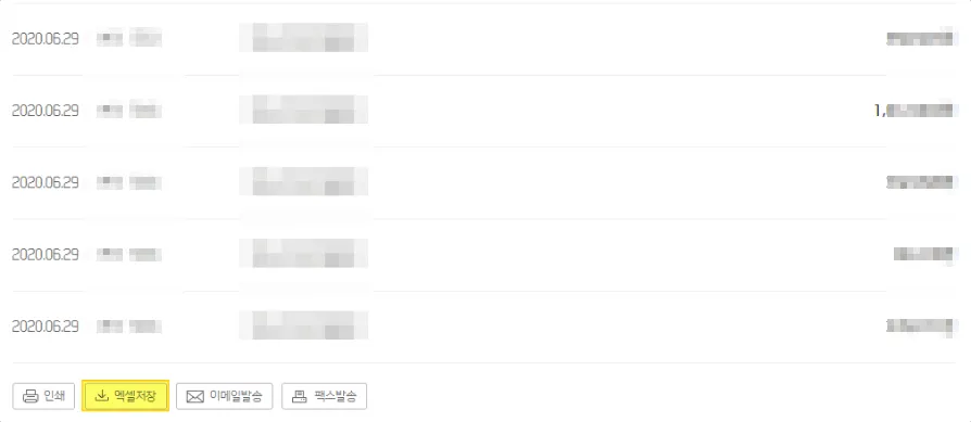 이용 내역 맨 아래의 엑셀저장 버튼을 눌러서 자료를 다운로드하시면 됩니다.