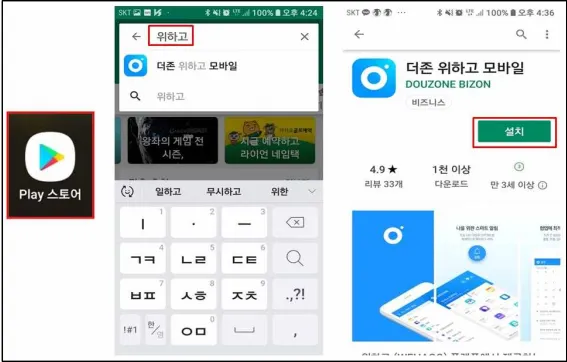 갤럭시 등 안드로이드 계열의 경우 Play스토어에서 “WEHAGO” 또는 “위하고”를 검색하여 앱(App)을 설치합니다.
